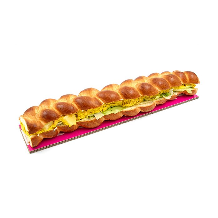 Zutaten: Butterzopf ((WEIZENMEHL, Wasser, Backhefe, BUTTER 3.5%, Milchpulver (MILCHSERUMPULVER, Dextrose, BUTTERFRAKTION), EIER, jodiertes Speisesalz, Backmittel ((WEIZENMEHL, Dextrose, Emulgator (E472e), GERSTENMALZMEHL, Stabilisatoren (Calciumphosphate), Citrus-Fruchtfasern, Enzyme, Mehlbehandlungsmittel (Ascorbinsäure), GERSTENMALZEXTRAKT)), Poulet-Cocktailmasse ((Pouletbrust CH, Mayonnaise (Sonnenblumenöl, EIGELB, SENF (Wasser, SENFSAMEN, Tafelessig, Kochsalz, Zucker, Gewürze), Tafelessig, Kochsalz, Würze), Tomatenpüree, Ketchup (Tomaten, Essig, Zucker, Speisesalz, Gewürzextrakt, Kräuterextrakt, SELLERIE, Gewürze), Würze (jodiertes Speisesalz, Maltodextrin, Hefeextrakt, Palmöl, Pastinaken, Speisesalz, Zwiebelpulver, Gewürze, Butterpilzpulver, Lorbeerblätter, Gewürzextrakt), modifizierte Stärke, Cognac (Farbstoff (Ammonsulfit-Zuckerkulör E150d), Salatsauce (Mayonnaise, JOGHURT, Wasser, Würze, Tafelessig (Branntweinessig, SULFITE), Senf (Tafelessig, Wasser, SENFSAMEN, Kochsalz jodiert, Zucker, Gewürze und Gewürzextrakt), Kräutermischung (enthält MAGERMILCHJOGHURT, CREME FRAICHE, VOLLEIPULVER, SENFSAMEN, MILCHZUCKER), Würze (enthält MILCHZUCKER, WEIZENSTÄRKE, SELLERIE), Schnittlauch, Zitronensaft, Pfeffer)), Sandwich-Crème ((Pflanzenöl (Raps, Palm), Wasser, Emulgator (E471), Aroma, Speisesalz, Milchsäure, Beta-Carotin)), Eisbergsalat, EIER, Tomaten, Essiggurken, ((Gurken, Branntweinessig, Speisesalz, Zucker, Konservierungsstoffe (Natriumbenzoat, KALIUMMETABISULFIT), natürliches Aroma, Curcumaextrakt))