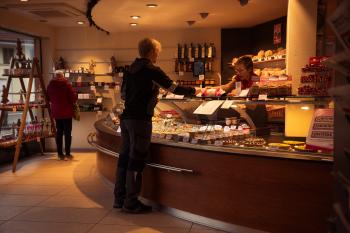 Wir legen uns auch ausserhalb unserer Filiale für Sie ins Zeug: Mit der Znüni-Tour bringen wir unsere frischen Backwaren und Snacks direkt zu Ihnen ins Geschäft. Für diejenigen, die es vorziehen, persönlich vorbeizukommen, bieten wir eine Vielzahl an Frühstücksoptionen an, inklusive unserem beliebten Bäcker-Zmorge.